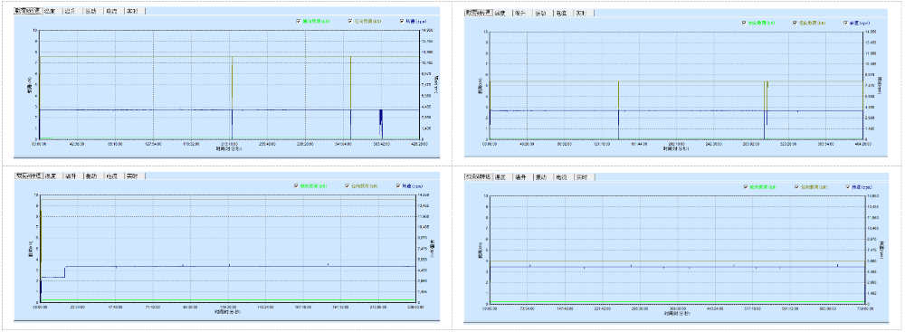 對(duì)整個(gè)試驗(yàn)工裝的振動(dòng)情況進(jìn)行記錄,對(duì)每一時(shí)刻的振動(dòng)值進(jìn)行記錄,在整個(gè)測試中的振動(dòng)趨勢變化可以全程跟蹤軸承的狀態(tài),是否出現(xiàn)異常以及異常的趨勢變化,分析軸承在測試中哪一階段開始出現(xiàn)異常,是否出現(xiàn)打滑等狀況;